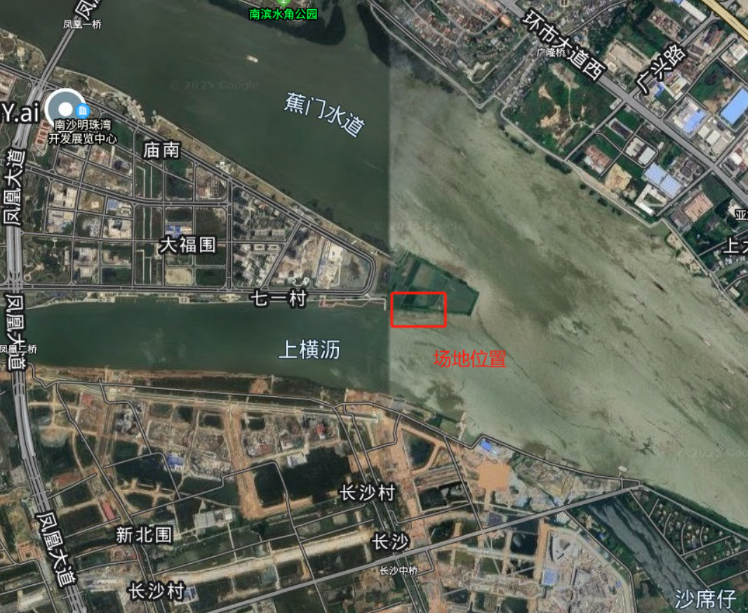 受委托,我公司承担了南沙明珠湾区跨江通道工程坞口围堰基坑的微动探测工作。该工程场地位置图下图所示。