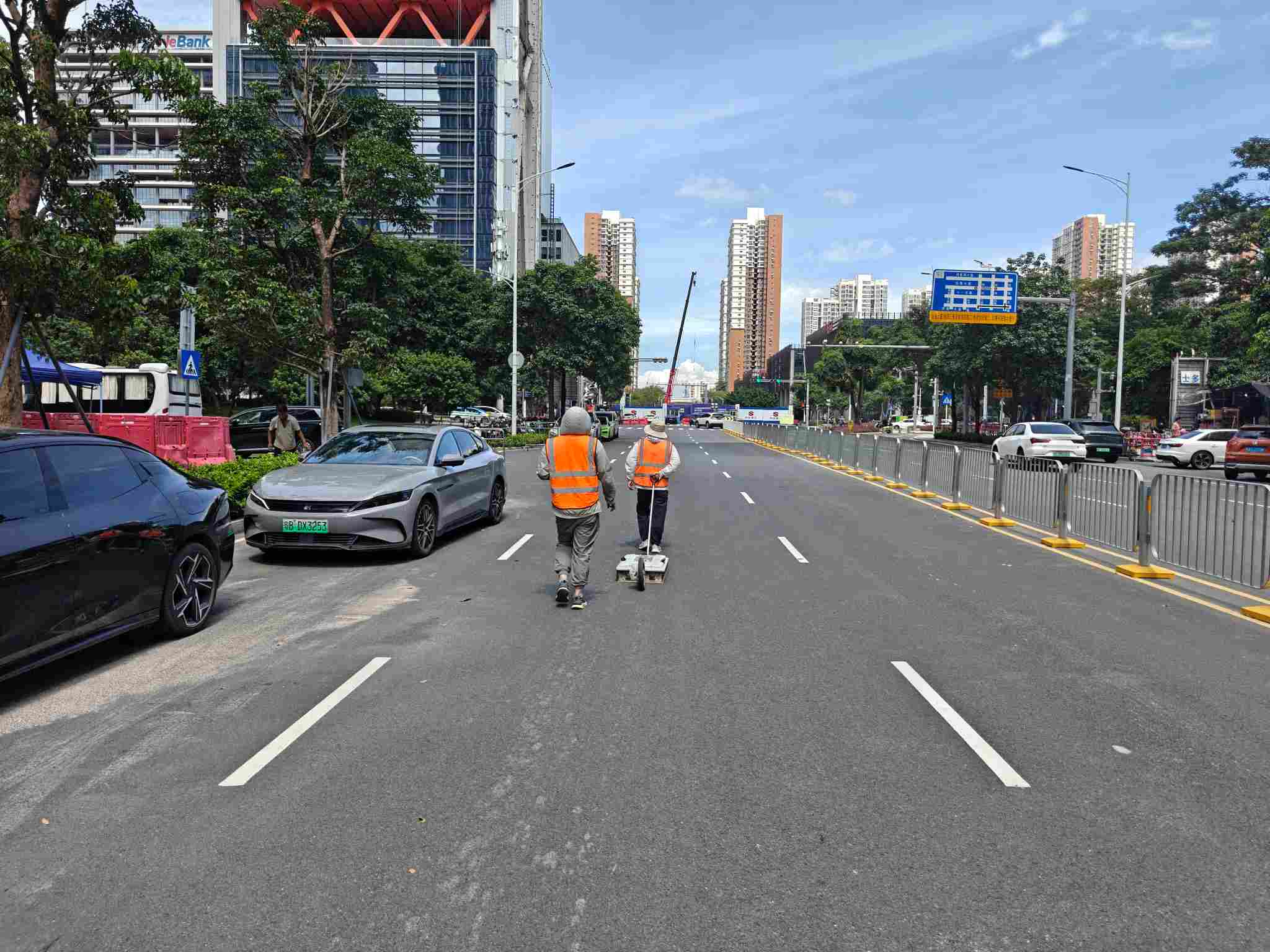 受委托,我公司承担了南山区桂湾二路、桂湾三路、桂湾四路地质雷达检测任务。工作目的是查明地面下方浅部是否存有空洞、脱空、疏松等隐患体,为后期地质隐患治理提供参考依据。